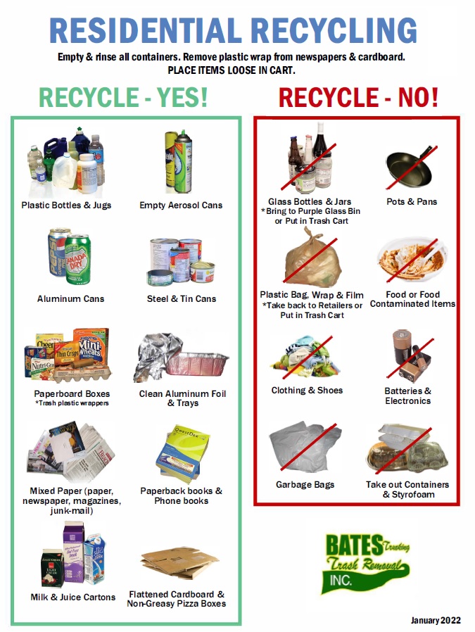 Materials recycled are aluminum, plastics, and newspapers. For recycled items, please note that cardboard boxes must be broken down, no plastic bags or plastic packing material allowed (these can be taken to local grocery stores like Harris Teeter or thrown away) and no glass. Click here for what is and is not permitted. Glass recycling must to be dropped off at special glass-only bins, locations linked here. Yard debris must be bagged in brown paper bags (up to 6 paper bags) and/or cut into 4ft length bundles and tied securely (up to 3 tied bundles).